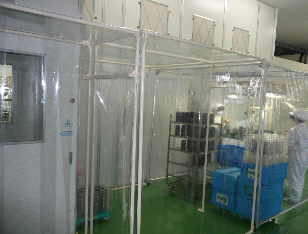搬入されたワークはエアーシャワーを通って準備室へ。 | |