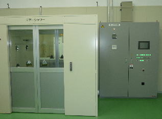 搬入されたワークはエアーシャワーを通って準備室へ。 | |