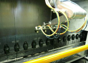 仮乾燥後、冷却ゾーンを通過して出て来た塗装品を、本乾燥台車にセットします。 | |