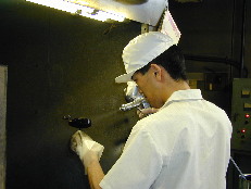 少量多品種の製品には熟練した塗装技能者が一つひとつ丁寧に塗装を施します。 微妙な模様の表現や、ダイキャストなど表面状態が均一でない部品の高級仕上げは、手吹きならでは、です。 |